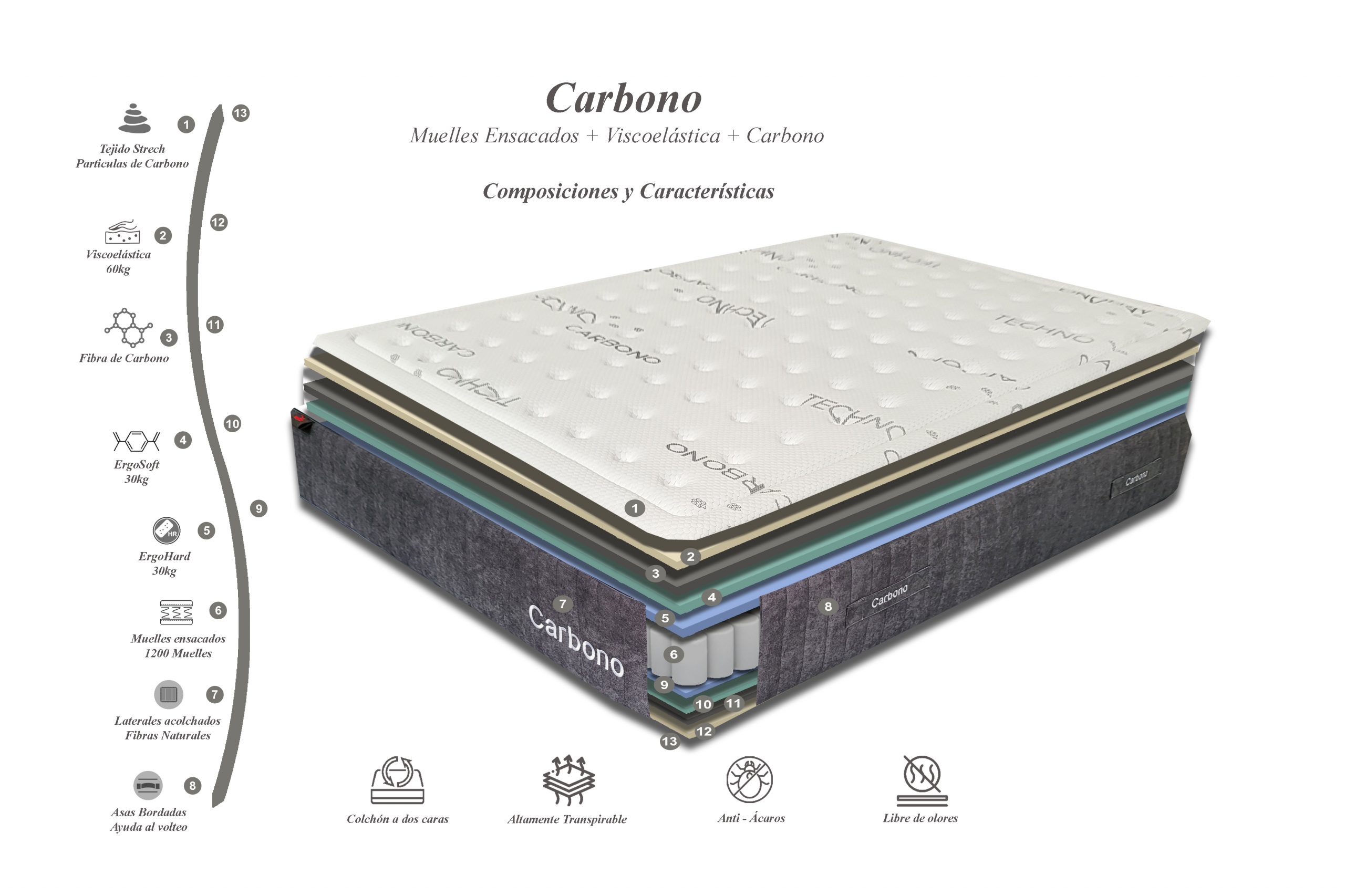 Nuestro modelo Carbono, es un colchón firme pero muy adaptable para los que buscan un producto equilibrado.