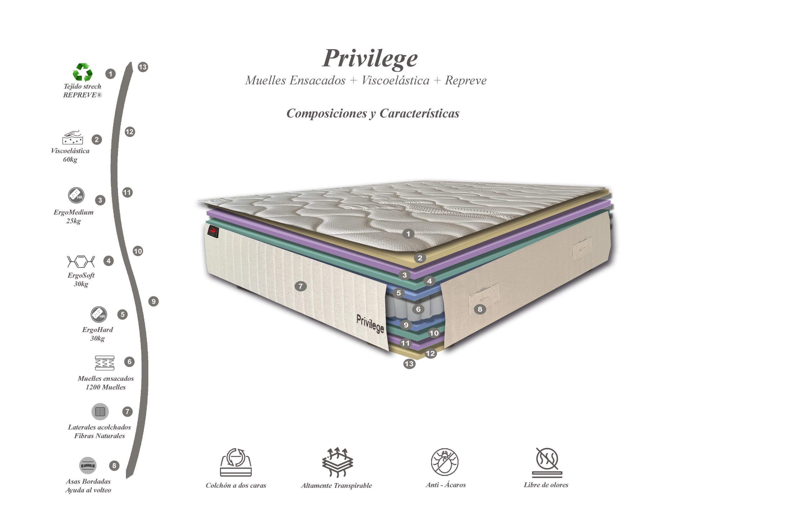 El colchón Prilege esta desarrollado para aquellas personas que buscan un alto confort a un mejor precio. Con un descanso uniforme evitando movimientos innecesarios.